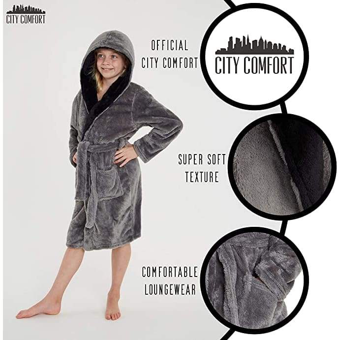 CityComfort Dressing Gown Boys, Kids Fleece Hooded Dressing Gown 7-14 Years