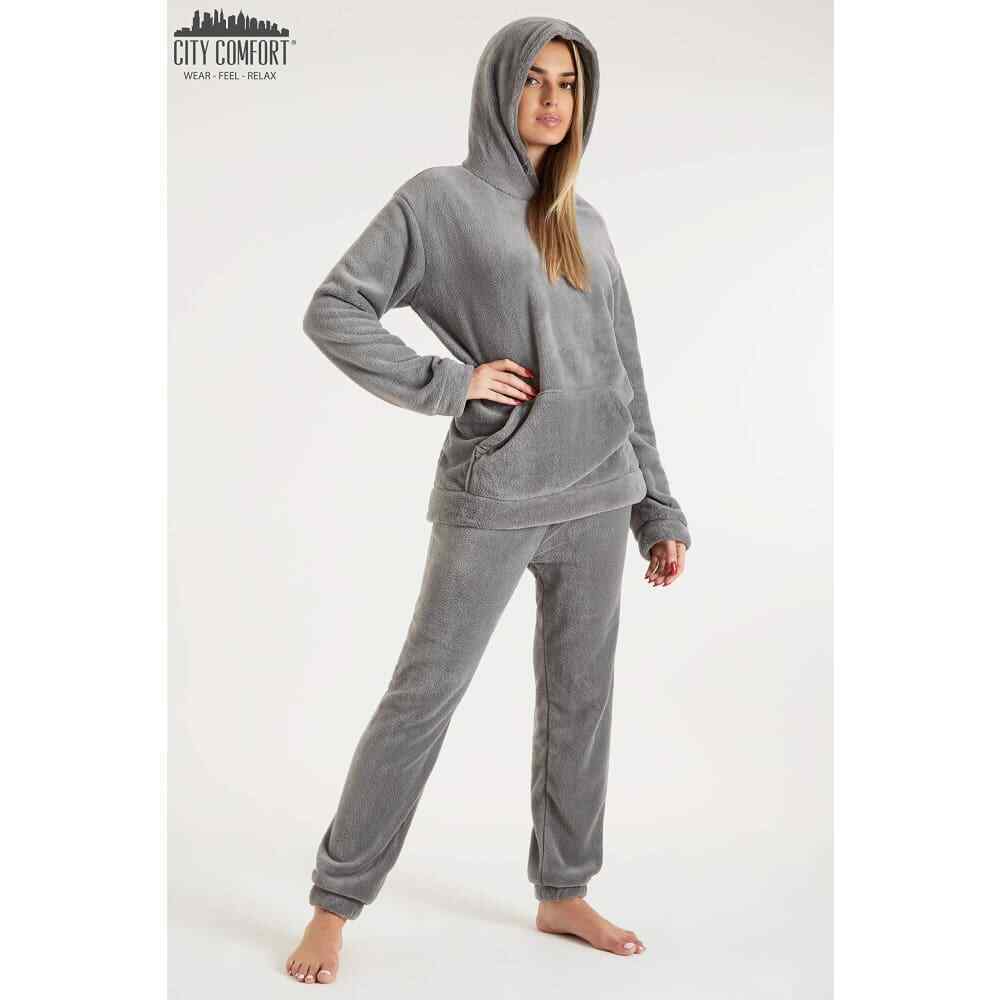 CityComfort Pyjamas Set for Women and Teens Fleece Hooded Long PJs Warm Loungewear Fluffy Nightwear Soft Cosy Sleepwear Gifts for Her