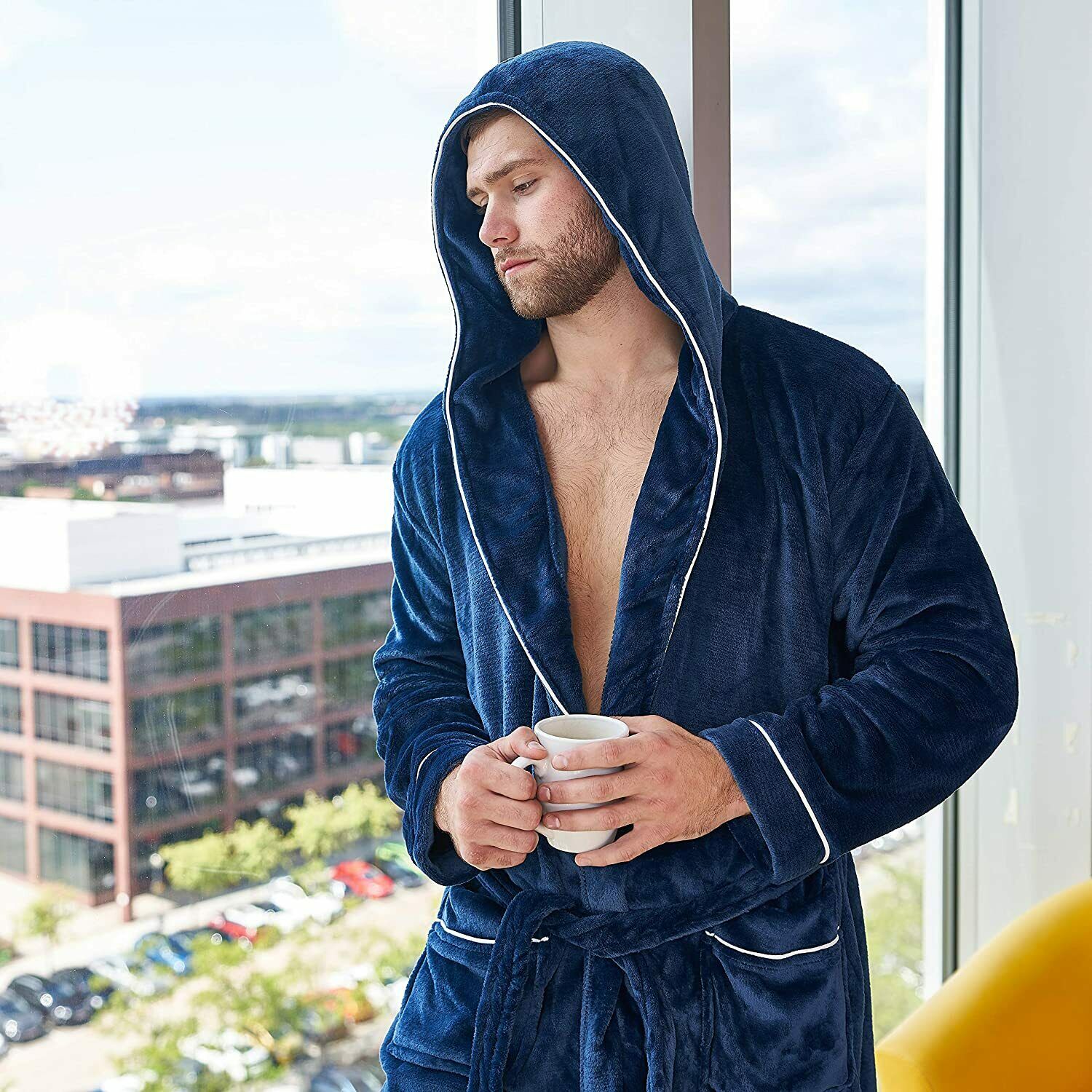 - Super-Soft and Cosy: Our dressing gowns for men are made with super-soft fleece (100% Polyester) and features a hood, long sleeves and a tie waist belt for a secure and adjustable fit