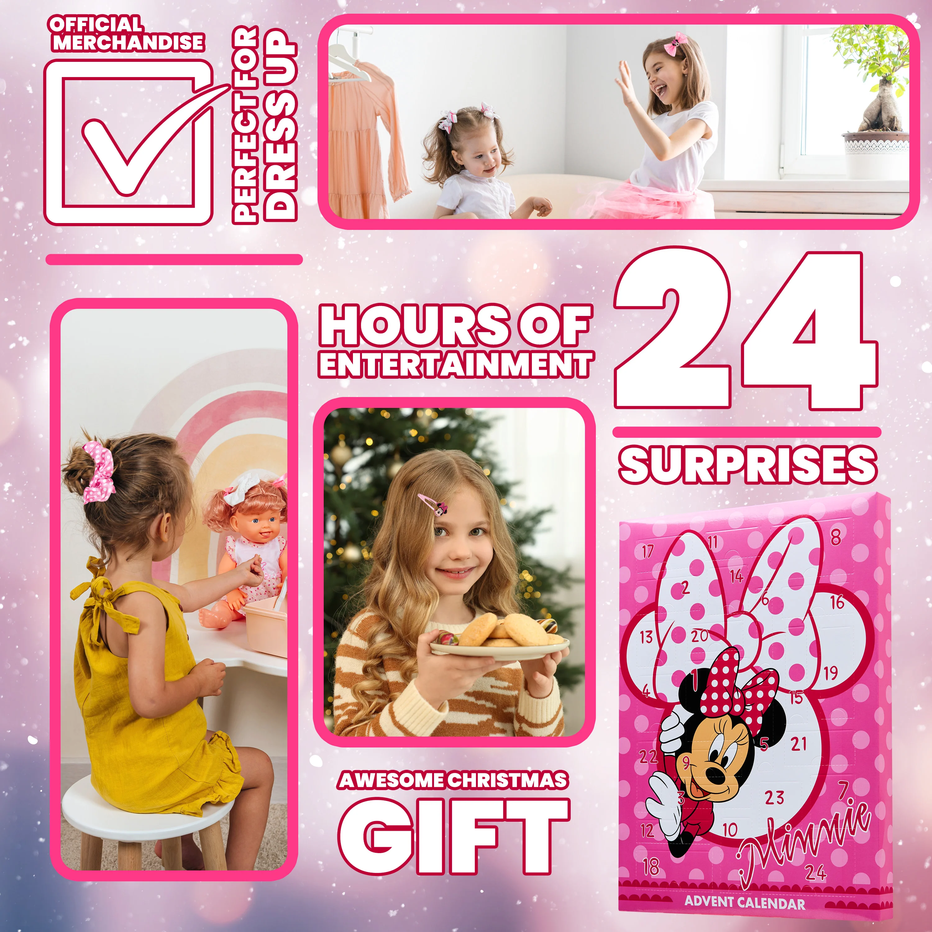Disney Minnie Mouse Advent Calendar 2025 Hair Accessories Countdown Calendar (Pink)