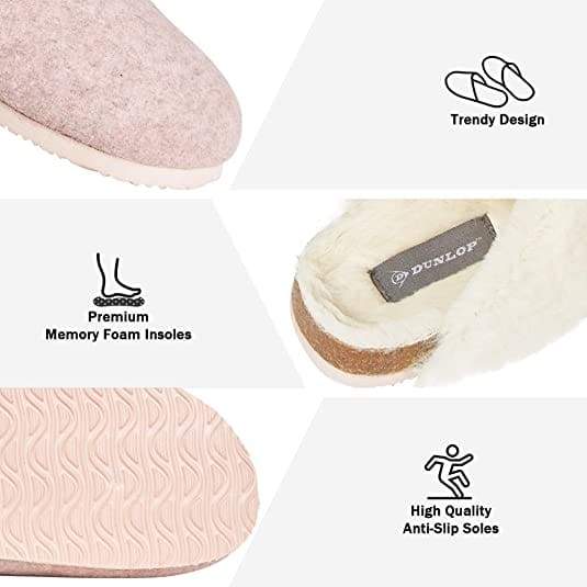 - FAUX FUR WOMENS SLIPPERS --- Super soft and cosy slippers women won't want to take off! Our new Dunlop slippers are perfect for relaxing at home and come with a fluffy lining to keep your feet warm and cozy all the time. Perfect for lounging around the living room and bedroom or going out to pick the mails.