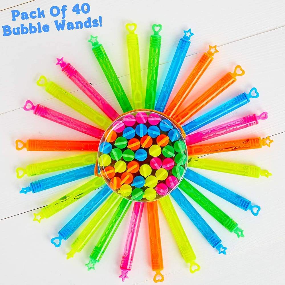- PACK OF 40 --- This fun pack of bubble wands includes 40x 5ml tubes of highly concentrated bubble solution, perfect for making hundreds of bubbles. Each tube also contains a super cool bubble wand. Great for sharing with friends or family.