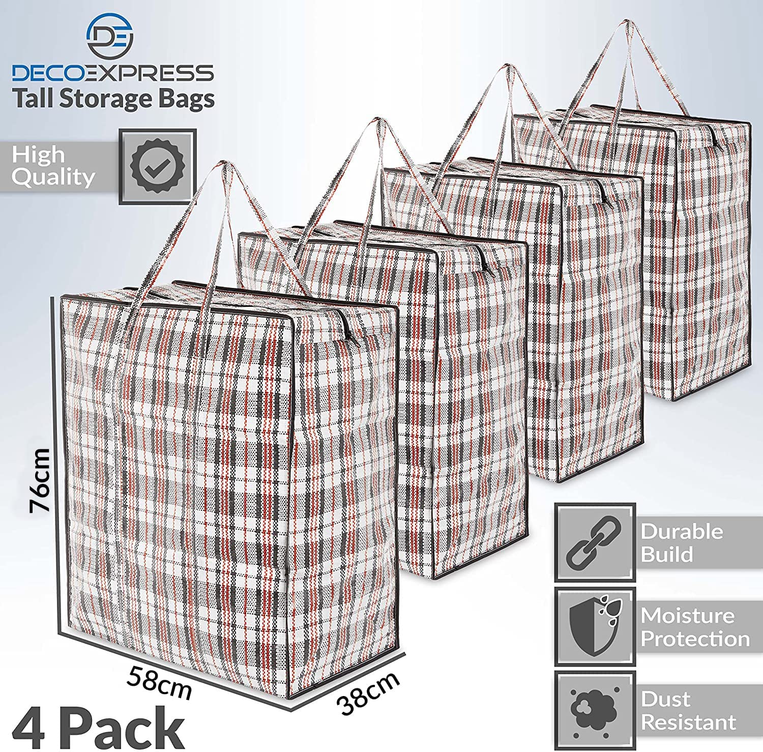 DECO EXPRESS Laundry Bag 4 Pack Jumbo Storage Bags With Zips, Extra Large Storage Organizers, Underbed Storage Solutions, Kitchen, Toys, Duvet, Moving And Wardrobe Storage, Clothes Storage Bags